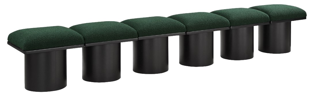 Bring valuable seating and remarkable style to your space with this green Pavilion Boucle Fabric Bench, an exquisite balance of style and usability for the entryway, bedroom, and beyond. Crafted from oak veneer with a black finish, this bench has a 4-inch-thick seat cushion that's channel-tufted for a touch of luxury.Read More