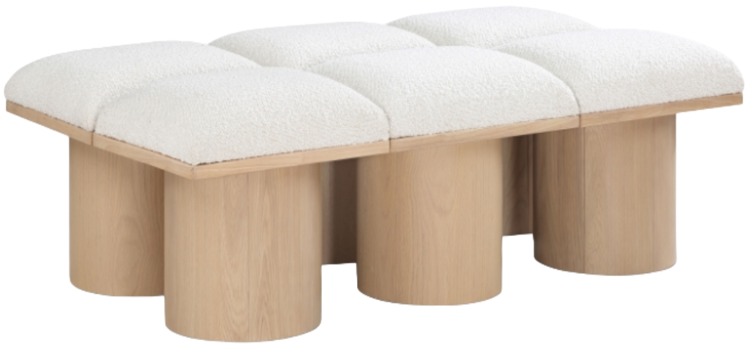 Bring valuable seating and remarkable style to your space with this cream Pavilion boucle fabric bench, an exquisite balance of style and usability for the entryway, bedroom, and beyond. Crafted from oak veneer with a natural finish, this bench has a 4-inch-thick seat cushion that's channel-tufted for a touch of luxury.Read More
