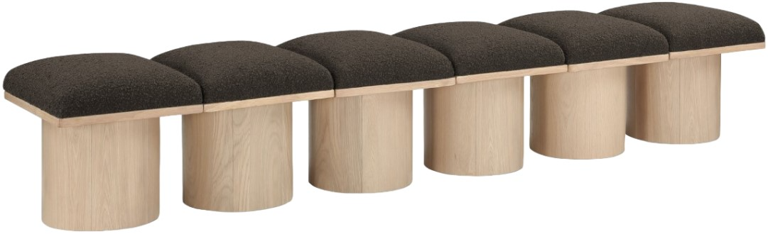 Bring valuable seating and remarkable style to your space with this Brown Pavilion boucle fabric bench, an exquisite balance of style and usability for the entryway, bedroom, and beyond. Crafted from oak veneer with a natural finish, this bench has a 4-inch-thick seat cushion that's channel-tufted for a touch of luxury.Read More