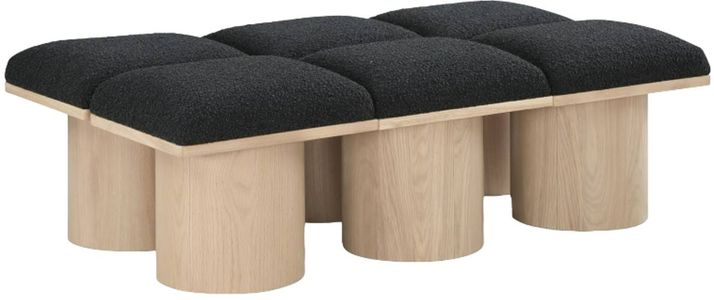 Bring valuable seating and remarkable style to your space with this black Pavilion boucle fabric bench, an exquisite balance of style and usability for the entryway, bedroom, and beyond. The bench's columnar bases add a dash of art deco design, making it a captivating focal point in any room.Read More