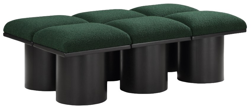 Bring valuable seating and remarkable style to your space with this green Pavilion Boucle Fabric Bench, an exquisite balance of style and usability for the entryway, bedroom, and beyond. Crafted from oak veneer with a black finish, this bench has a 4-inch-thick seat cushion that's channel-tufted for a touch of luxury.Read More
