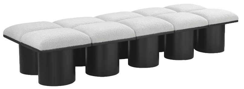 Bring valuable seating and remarkable style to your space with this cream Pavilion Boucle Fabric Bench, an exquisite balance of style and usability for the entryway, bedroom, and beyond. Crafted from oak veneer with a black finish, this bench has a 4-inch-thick seat cushion that's channel-tufted for a touch of luxury.Read More