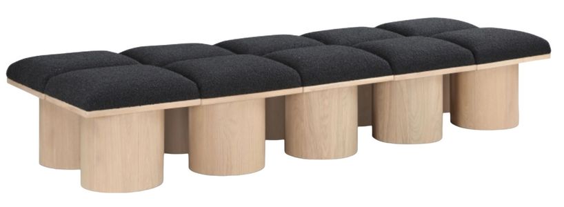 Bring valuable seating and remarkable style to your space with this black Pavilion boucle fabric bench, an exquisite balance of style and usability for the entryway, bedroom, and beyond. Crafted from oak veneer with a natural finish, this bench has a 4-inch-thick seat cushion that's channel-tufted for a touch of luxury.Read More
