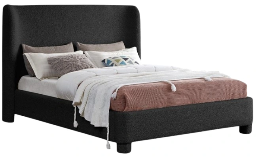 Breathe new life into your bedroom decor with the Penny Boucle Fabric King Bed. This stunning bed is upholstered in a luxurious black boucle textured fabric, adding a touch of elegance to your space. The curved headboard provides a comfortable and supportive backrest while adding a stylish.Read More