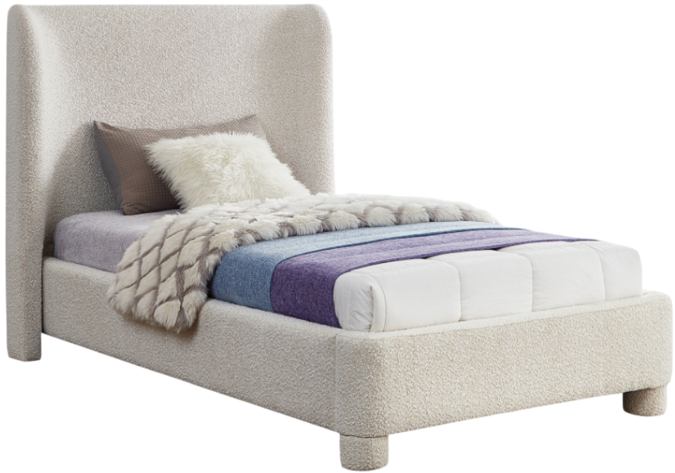 Breathe new life into your bedroom decor with the Penny boucle Fabric Twin bed. This stunning bed is upholstered in a luxurious cream boucle textured fabric, adding a touch of elegance to your space.Read More
