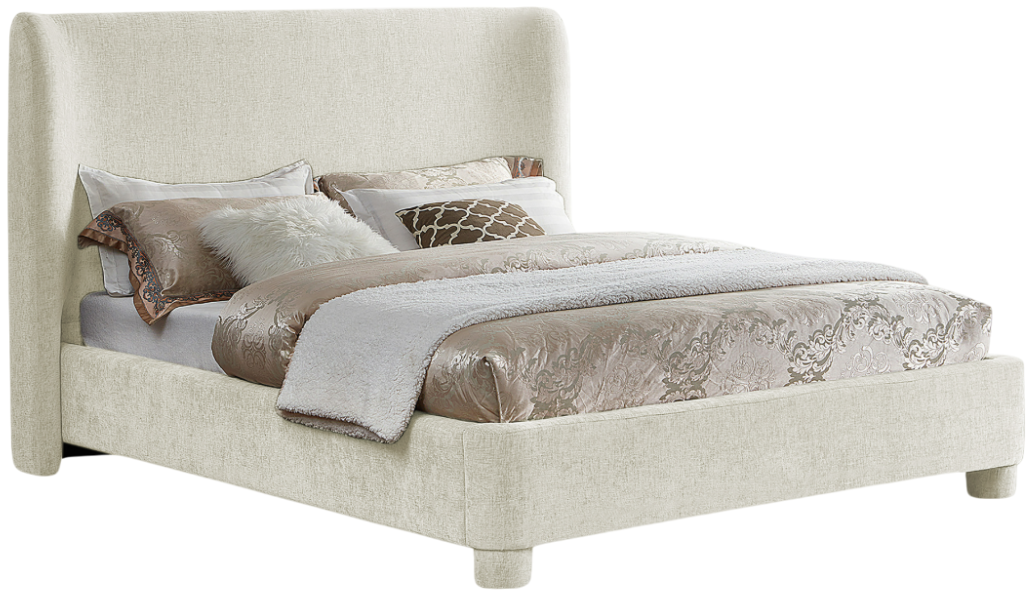 Give your bedroom an instant makeover with this cream Penny chenille fabric bed. A fusion of style and comfort, this full-size bed comes upholstered in rich cream chenille fabric for a charming look and has an extra-high, curved headboard for optimal support while you read or watch TV.Read More
