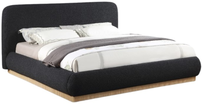 Give your bedroom (and yourself) the royal treatment with this Rigby black boucle fabric queen bed. Wrapped in rich black boucle fabric, its natural finish fluted base exudes sophistication. Fully slatted, it eliminates the need for a box spring, offering modern convenience.Read More
