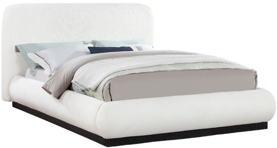 Give your bedroom (and yourself) the royal treatment with this Rigby cream linen textured fabric king bed. Wrapped in rich linen textured fabric, its black finish fluted base exudes sophistication. Fully slatted, it eliminates the need for a box spring, offering modern convenience.Read More