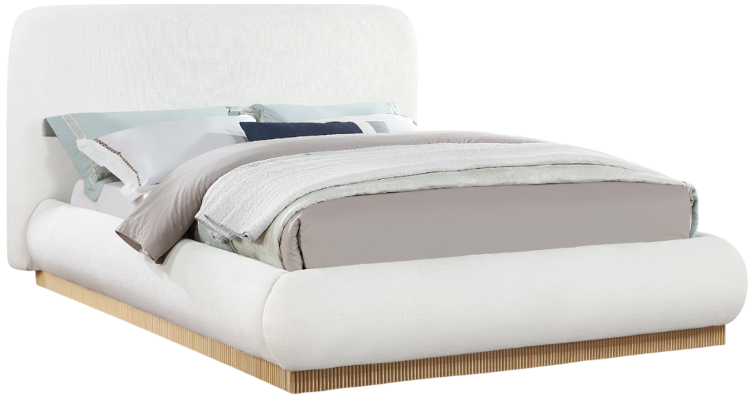 Give your bedroom (and yourself) the royal treatment with this Rigby cream linen textured fabric king bed. Wrapped in rich linen textured fabric, its natural finish fluted base exudes sophistication. Fully slatted, it eliminates the need for a box spring, offering modern convenience.Read More