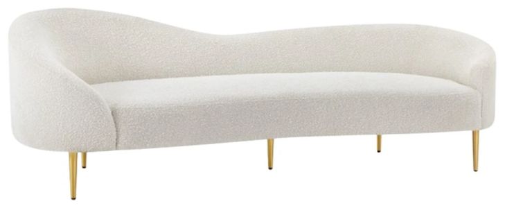 Impress family and guests alike with this Ritz boucle fabric sofa. Wrapped in a cozy cream boucle fabric, this sofa exudes elegance and comfort. The gold metal legs add a touch of glamour to the overall design, making it a perfect addition to any modern living space.Read More