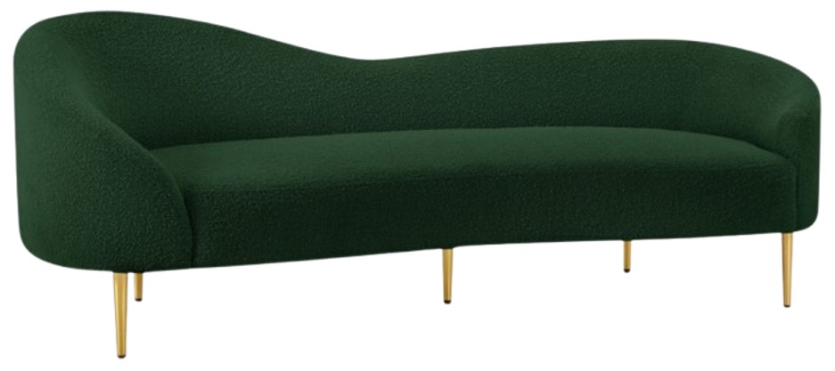 Impress family and guests alike with this Ritz Boucle Fabric Sofa. Wrapped in a cozy green boucle fabric, this sofa exudes elegance and comfort. The gold metal legs add a touch of glamour to the overall design, making it a perfect addition to any modern living space.Read More