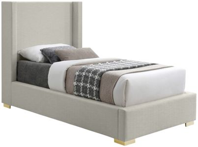 Make a big impression in the bedroom with this twin-size Royce linen textured bed. A wingback headboard is the star of the show here, with its extra height adding an element of drama to this exceptionally crafted bed. The headboard, sides and footboard of this Royce bed are covered in rich beige linen textured fabric.Read More