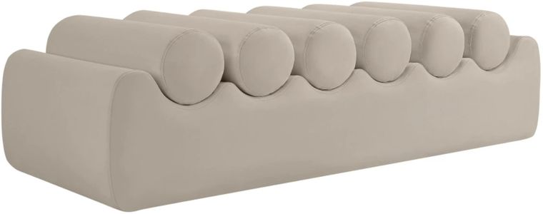 Discover the Rumble taupe vegan leather bench, featuring a sleek, soft feel that adds a touch of contemporary elegance to any room. This stylish bench offers six removable bolster pillow seats for enhanced comfort and versatility.Read More