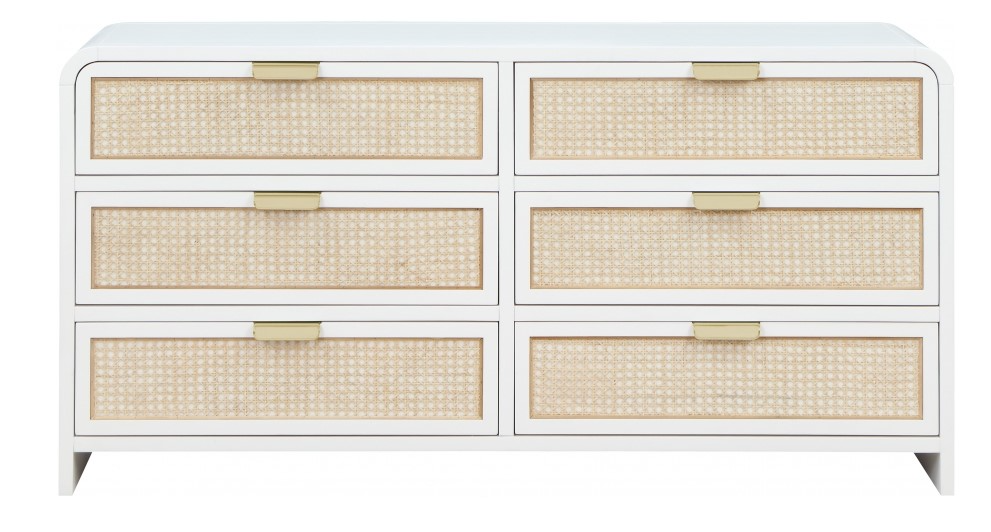 Bold design elements are the hallmark of this Sage wood dresser. This beautiful dresser features up-to-the-minute styling and a white finish that’s perfect for your contemporary room. Natural cane details provide an exciting contrast that adds a robust finish to your bedroom look.Read More