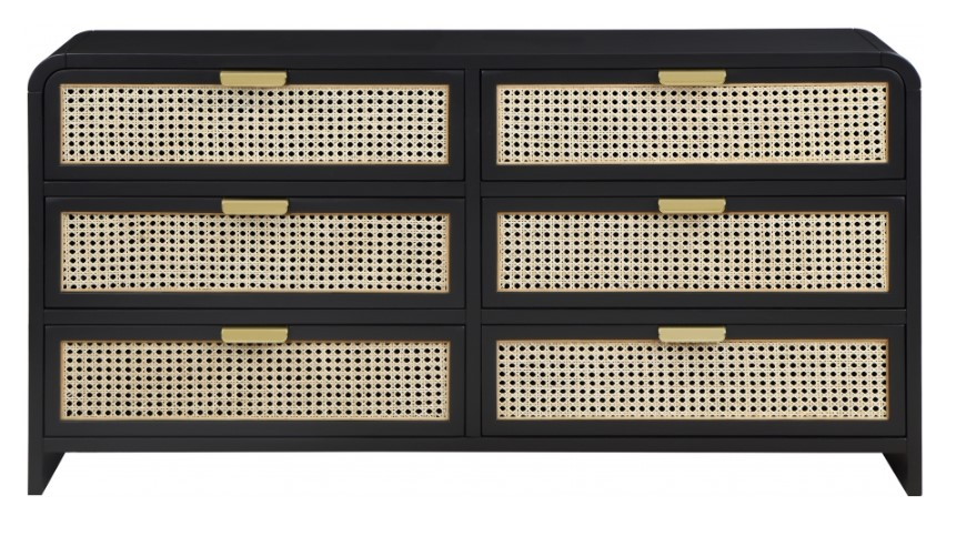 Bold design elements are the hallmark of this Sage wood dresser. This beautiful dresser features up-to-the-minute styling and a black finish that’s perfect for your contemporary room. Natural cane details provide an exciting contrast that adds a robust finish to your bedroom look.Read More