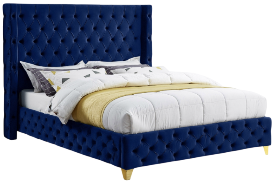 Bring luxury to the forefront when you add this Savan velvet king-size bed to your room. Upholstered in rich navy velvet from the top of its super-high headboard down to its footboard, this beautiful bed features deep button tufting and a wingback detail to make it a true standout in your space.Read More