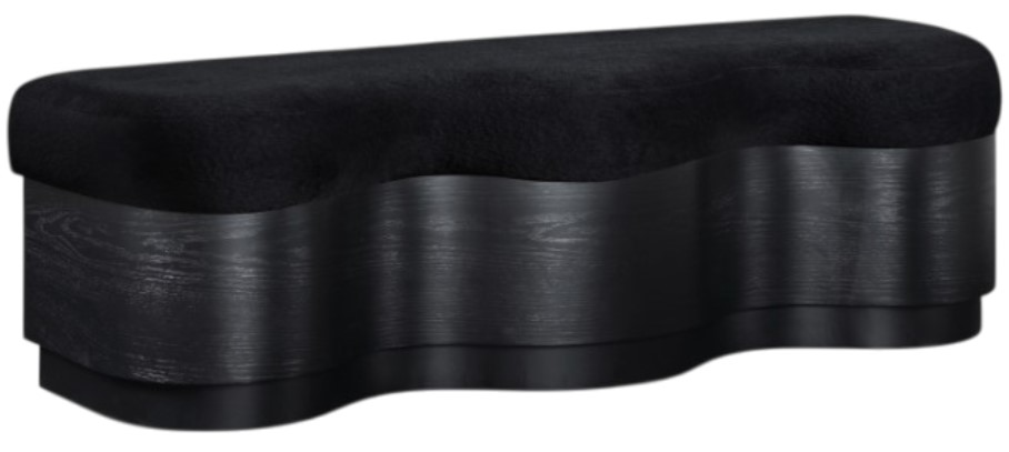 The bold and artistic Savoy black velour fur fabric upholstered bench brings a unique wave-like design to your space. Plush velour fur fabric atop creates a soft, luxurious seating experience, while the sculptural wooden base in a rich black finish adds a playful yet sophisticated touch.Read More