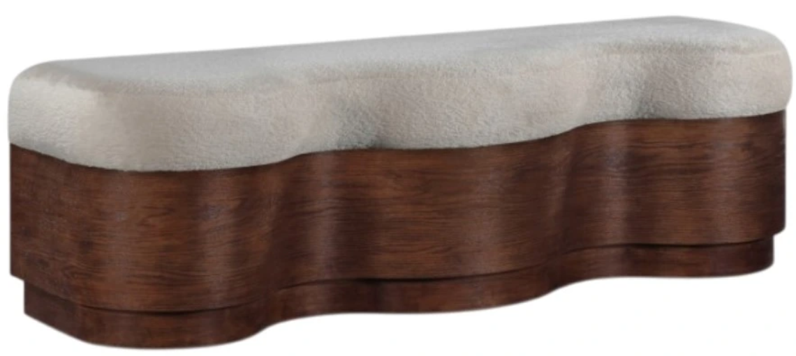 The bold and artistic Savoy beige velour fur fabric upholstered bench brings a unique wave-like design to your space. Plush velour fur fabric atop creates a soft, luxurious seating experience, while the sculptural wooden base in a rich brown walnut finish adds a playful yet sophisticated touch.Read More