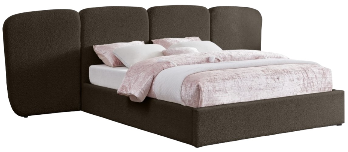 The plush boucle fabric has a rich brown tone that is not only visually appealing but also provides a soft and comfortable touch, adding an element of elegance and refinement to your room. With this bed, you can indulge in a resort-like experience right in the comfort of your own home.