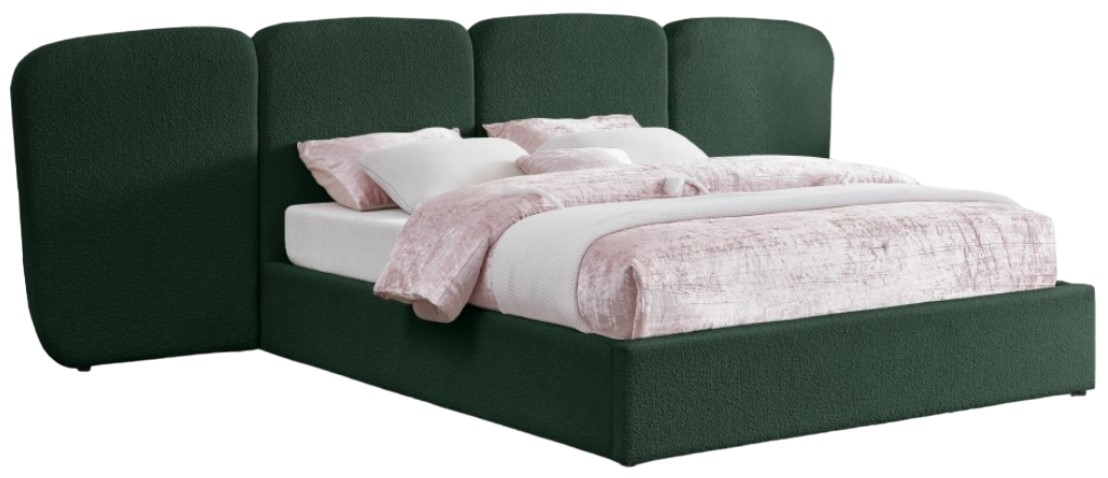 The plush boucle fabric has a rich Green green tone that is not only visually appealing but also provides a soft and comfortable touch, adding an element of elegance and refinement to your room. With this bed, you can indulge in a resort-like experience right in the comfort of your own home.