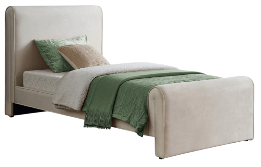 Cuddle up and rest from the welcoming confines of this Sloan Velvet Bed. This stunningly beautiful bed is just the thing for a bedroom makeover that turns heads. The bed's headboard, footboard, and sides are covered in the softest rich cream velvet for a striking look that is elegantly contemporary in your master bedroom suite.Read More