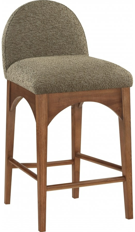 The Waldorf Boucle Fabric Counter Stool exudes elegance and comfort. Crafted with solid ash wood, this stool boasts a sturdy and durable construction. The walnut-finished legs provide a warm and welcoming touch to the overall design. The plush olive boucle fabric on the seat and backrest of the stool offers a soft and cozy seating experience.Read More