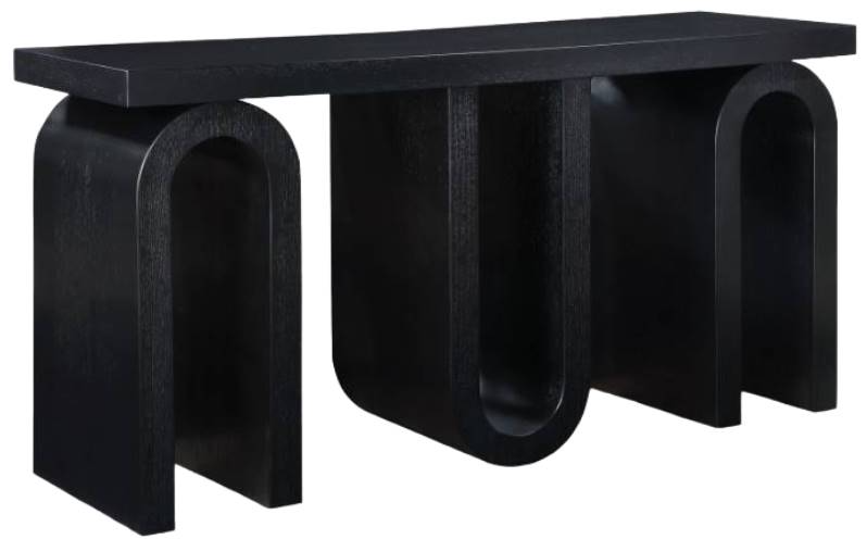 Bring a tailored look to your room with this Westbourne black console table. This handsome table's rich black finish and oak veneer are the epitome of timeless elegance, while the contemporary design features an artfully styled triple base to instantly draw the eye.Read More