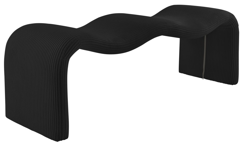 Infuse your decor with the Willow black corduroy bench, showcasing the rich, soft texture of microsuede corduroy with sophisticated curvature. With its sturdy iron metal inner frame, this bench effortlessly blends durability with a sleek, contemporary design.Read More