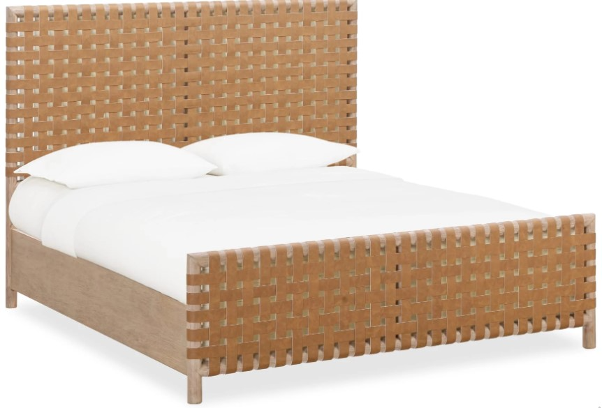 Distinctive head and footboard are hand woven using strips of soft, durable synthetic leather