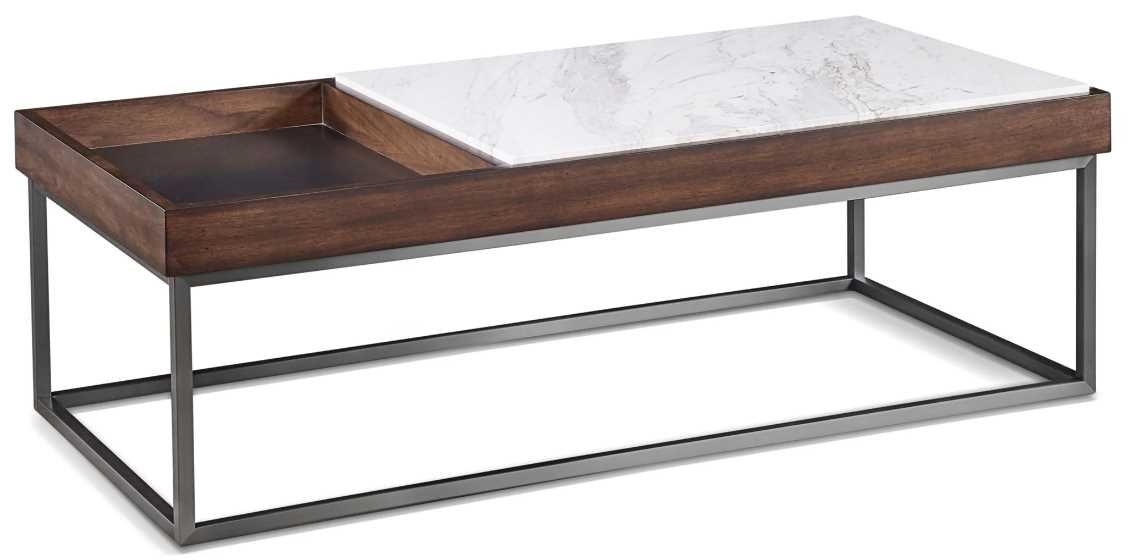 Stand out from the crowd with the Ennis collection by Modus Furniture. Made with natural Jazz marble and Walnut veneer, this group's handsome profile is eclipsed only by its practical spirit. Brushed stainless steel provides a stable base for a distinctive dual-level top that helps keep odds and ends in place.Read More
