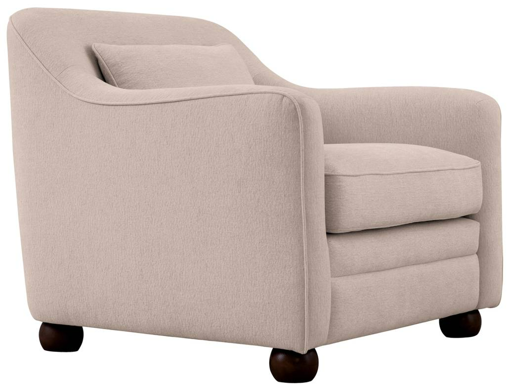 The Amira accent chair's graceful silhouette promises cloud-like comfort, inviting you to sink in and unwind. Upholstered in durable polyester fabric, and accentuated with a piping details it marries beauty with practicality. The high back curves to embrace, while gentle flared arms and plush lumbar cushion offer enhanced comfort.Read More