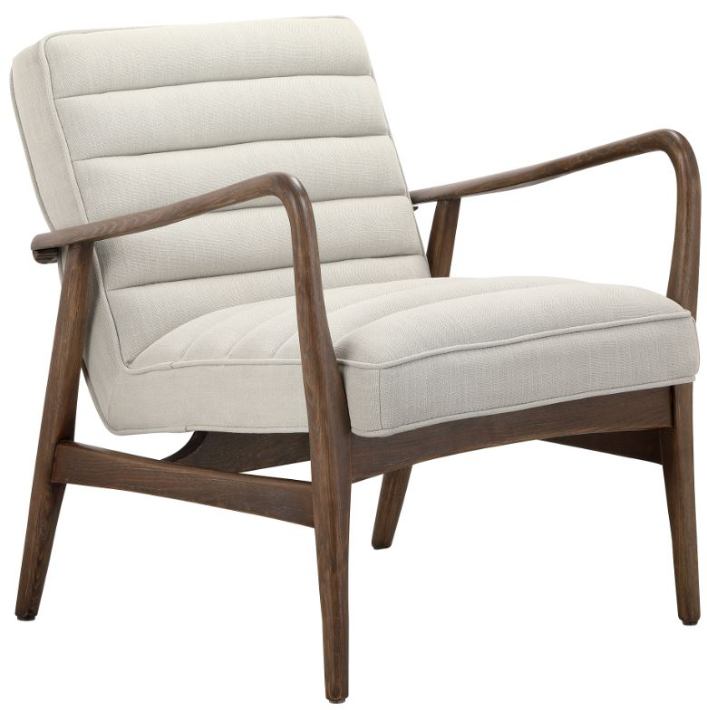 Soft and inviting, the Anderson armchair's rolled, tufted seating and slim side arms make it the perfect spot to enjoy a book or a cocktail. Premium 100% cotton upholstery in a refined beige hue creates a delightful contrast against its robust, solid ash wood construction.Read More