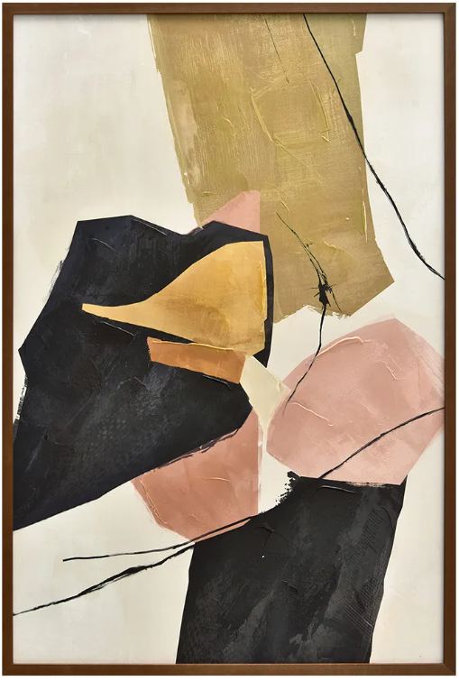 Inspired by the 60s, Anni's rich amber, dusty pink and soft olive tones underscore the playful abstract shapes that are grounded by the cream and black backdrop. The warm brown finish of the solid pine frame highlights the presentation with a vintage feel.Read More