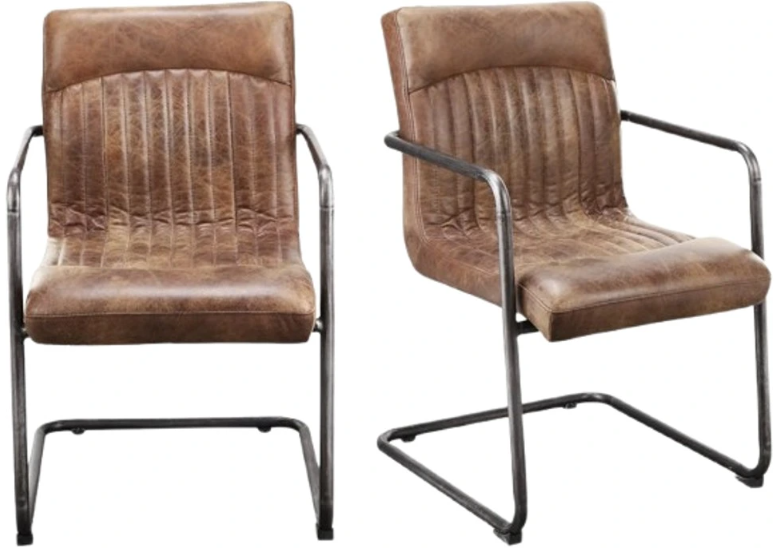 The Ansel dining chair features an industrial iron frame and easy-to-clean distressed top grain leather upholstery. The perfect chair for adding some originality and industrial design to your home. Outfit your entire table with this simple yet stunning design. Available with arms or without as a dining chair.Read More