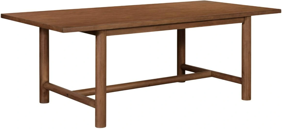 The Arden dining table's straight-edge tabletop exudes modern elegance while retaining a timeless charm. Its four cylindrical legs offer a softened silhouette juxtaposed with the table's clean lines and visual lightness. Stretcher bars infuse a touch of rustic appeal with its pine construction's rich, dark brown finish.Read More