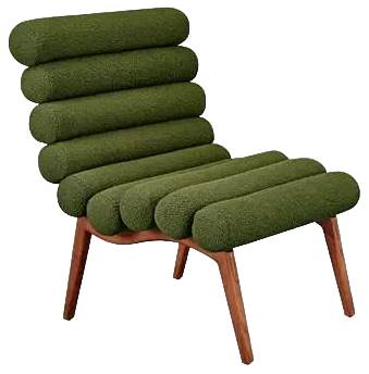 Comprised of a series of 5" (12.7 cm) diameter tubular forms, the chair's rounded ends provide a point of difference to more common plush channel detailing, while a textured boucle performance fabric finishes off the piece.