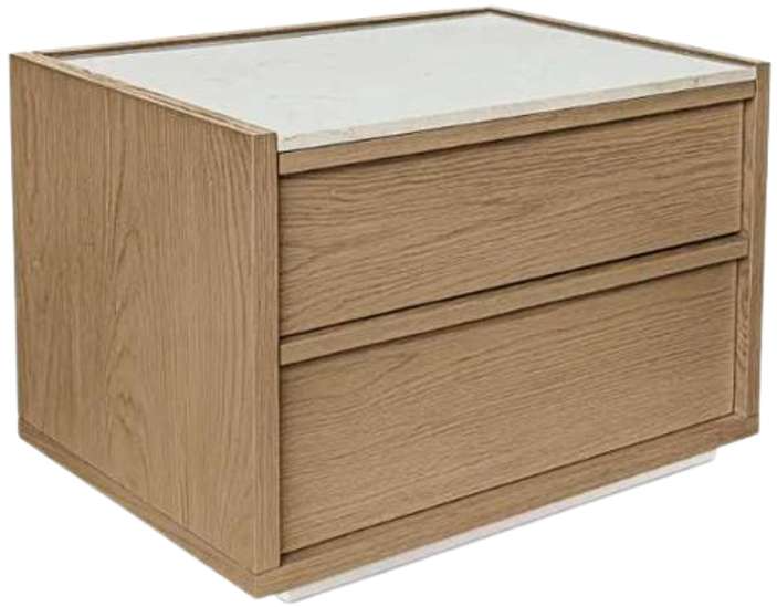 The perfect bedroom companion. A light rosa marble tabletop lies firmly over solid oak frame and oak veneer drawers. Its two soft-close compartments provide ample space for bedside needs. This nightstand is from Ashcroft collection.Read More