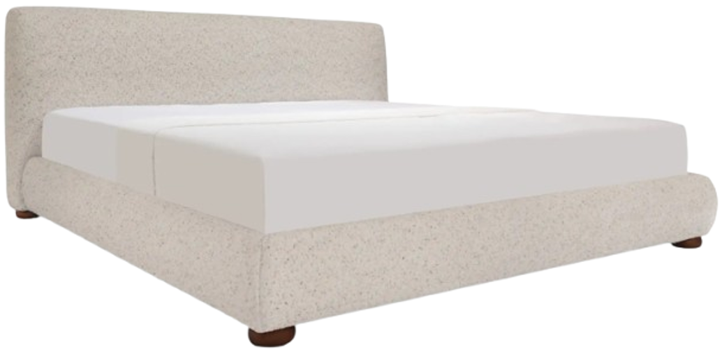 Sculptural curves: Generous round headboard and bun-shaped legs create a statement profile that feels both bold and inviting