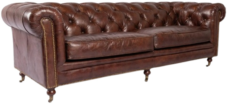 Capturing the bold elements of traditional design, the Birmingham sofa adds sophistication to your living space with its top-grain leather's rich brown. Sharp details are apparent in the chesterfield's tufted back, rolled arms, and meticulously placed brass detailing—pairs nicely with an old fashioned.Read More