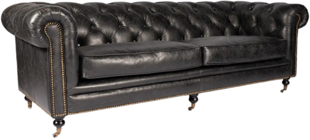 Capturing the bold elements of traditional design, the Birmingham sofa adds sophistication to your living space with its top-grain leather's deep charcoal. Sharp details are apparent in the chesterfield's tufted back, rolled arms, and meticulously placed brass detailing—pairs nicely with an old fashioned.Read More