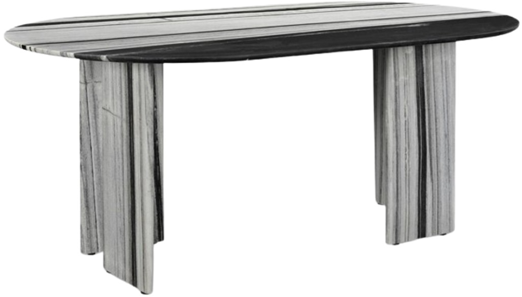 The table's allure is further enhanced by expressive panda marble, adding a touch of artistry and opulence. The smooth and organic textures on the marble beautifully contrast with the table's geometric base, creating an intriguing visual harmony and exuding an undeniable sense of elegance and versatility.Read More