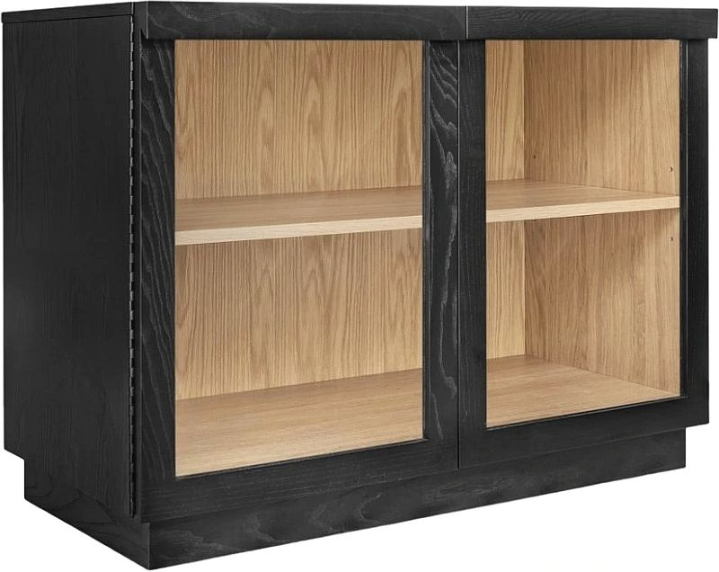 Inspired by the simple elegance of French Cleat handles, the Charlotte small cabinet features a captivating two-tone design with a sleek black outer frame and natural interior. Tempered glass doors offer a stylish, protective showcase, while three interior drawers neatly store smaller belongings.Read More