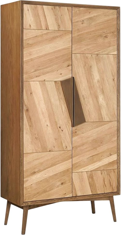 Geometric shapes adorn the face of the Charlton tall cabinet boasting all the colors, grains and textures that can only be brought by solid oak. Two doors with magnetic catches reveal four spacious interior shelves. Iron accents add a pop of visual intrigue.Read More