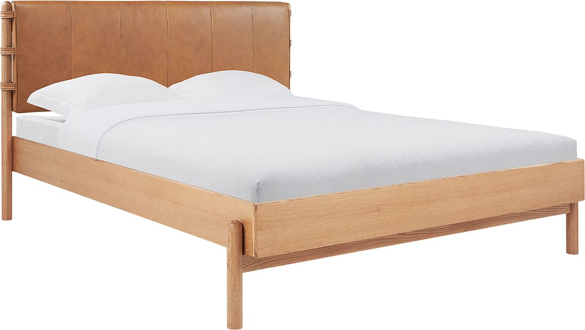 Crafted with a high-quality leather headboard and rounded solid oak legs, the Colby Queen bed frame elegantly brings understated luxury with superb craftsmanship. The soft curves of the leather headboard provide a sense of warmth and coziness, while the rounded legs add a touch of organic form to the overall design.Read More