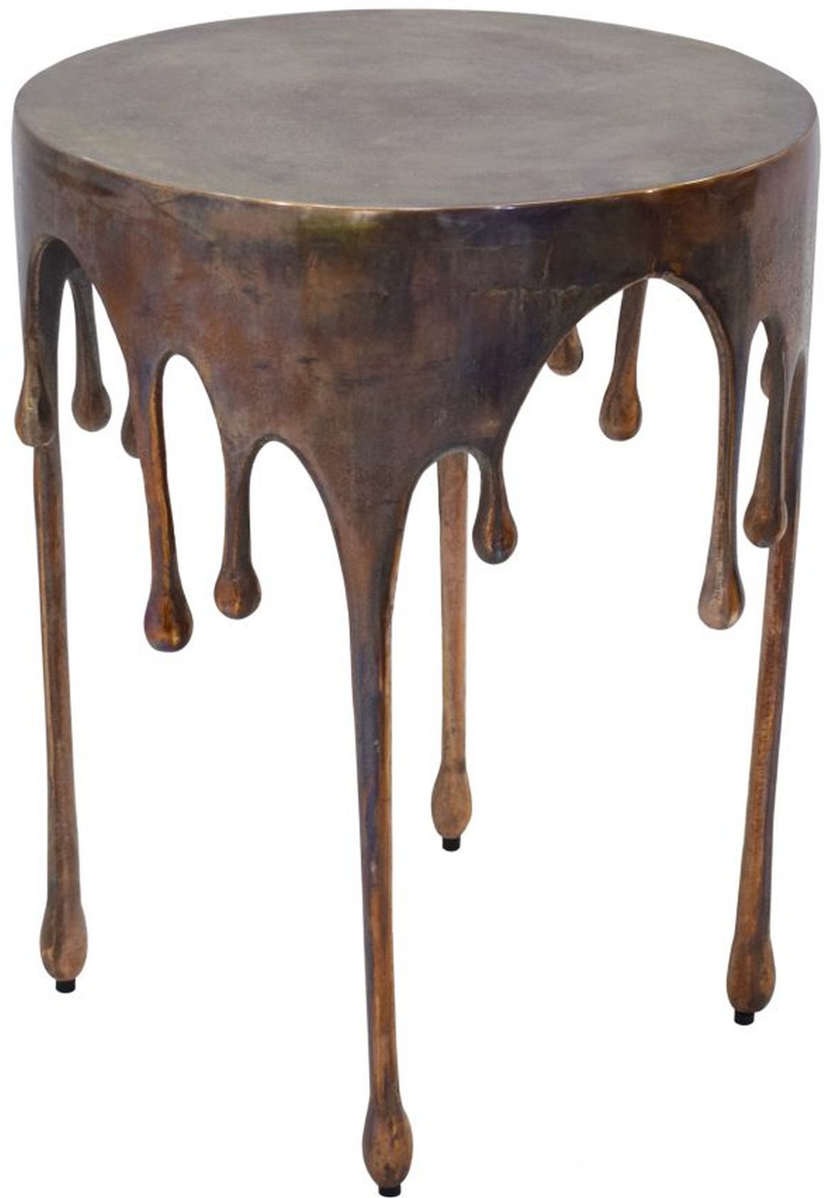 An accent table's standard look is thrown aside for a more unique look with the Copperworks accent table that presents itself as a dripping candle. Made in solid metal to show off an industrial design, this living room furniture will inspire excitement and intrigue with its statement design.Read More