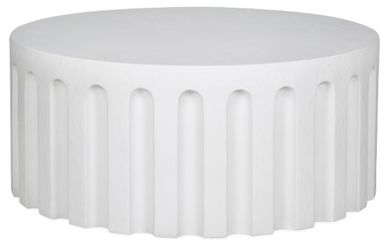 A striking interplay of shapes, the Eris outdoor coffee table embraces round forms with a column-like fluted side. The rough concrete texture adds depth and complexity to an otherwise simplistic form, making it a statement piece suitable indoors and out.Read More