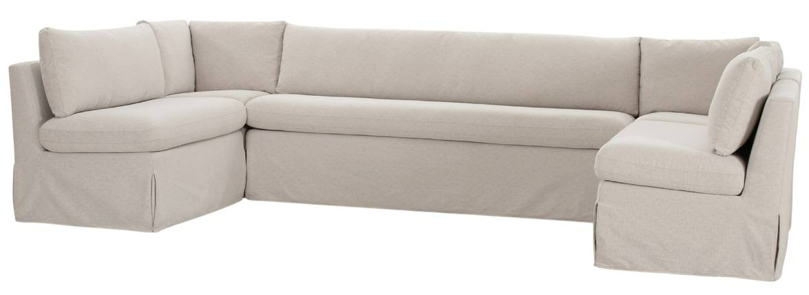 The Fable slipcover dining banquette U-shape's snug-fitting, washable slipcover with inverted pleats offers a tidy appearance and effortless upkeep. A slight tilt encourages a relaxed seating posture with a pillow back and seat cushions for comfort.Read More