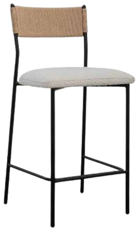 Crafted with an exquisite mix of materials, the Foley counter stool effortlessly merges rustic allure with contemporary grace. Its slender metal frame supports an easy-to-maintain seat upholstered in sumptuous bouclé Performance fabric, while the curved paper rope back evokes an essence of tranquility and warmth, offering compelling invitation to linger.Read More