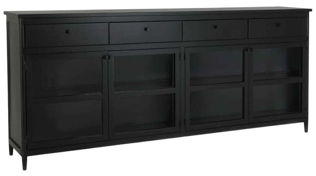 A Balanced Display: Four glass doors and four drawers provide the perfect stage for displaying and storing cherished possessions.