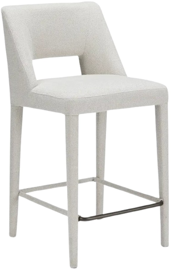 Fully upholstered in light brown performance fabric, the Joyce counter stool's cohesive silhouette exudes sophistication. The carved lower backrest adds visual lightness, while extended sides offer cradling support.Read More